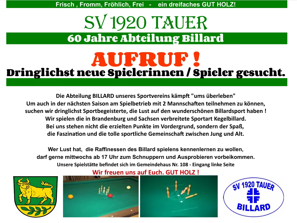 Billard: Bitterer Freitag für die Taueraner Billard-Teams